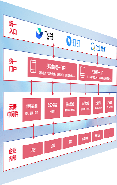 对协作平台提供支持服务,,支持企业应用与协作平台对接,,,包含组织同步、、消息集成、、待办集成等。。。支持目前主流的协作平台:钉钉、、、、企微和飞书。。